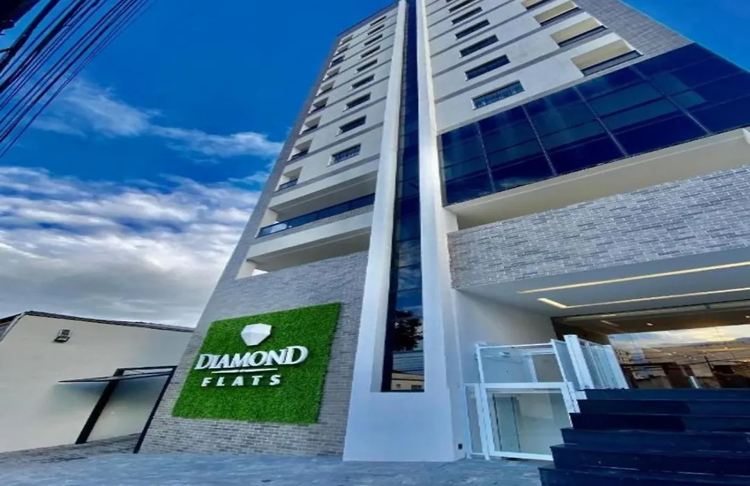 Eine voll ausgestattete Küchenzeile mit einer Kaffee-/Teemaschine, einem Kühlschrank und einem Herd gehört zur Ausstattung der Ferienwohnung Flat Diamond 908 für Selbstversorger. Der nächstgelegene Flughafen ist Varginha-Flughafen, 135 km vom Apartment.